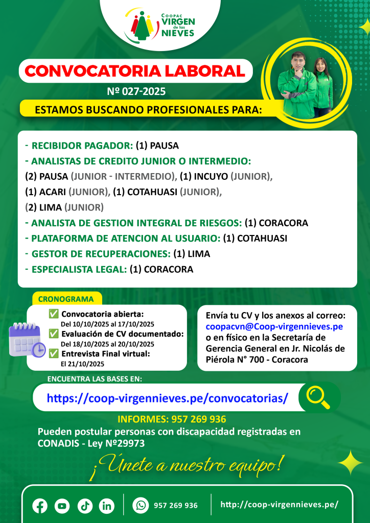 CONVOCATORIA COLABORADORES OCTUBRE N°027-2025