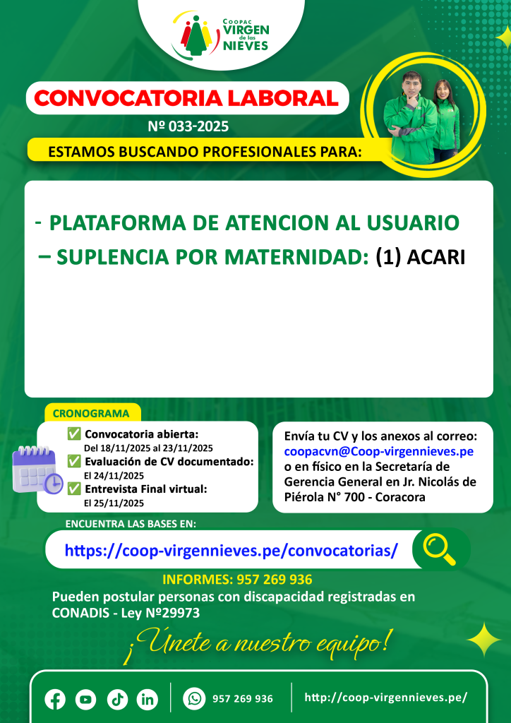 CONVOCATORIA COLABORADORES NOVIEMBRE N°033-2025